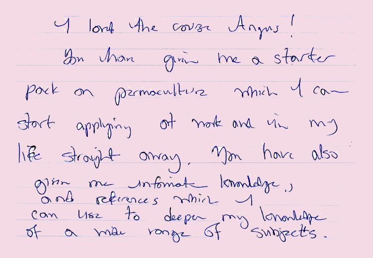 Here are some more comments from previous participants in the permaculture design course at Wiston Lodge