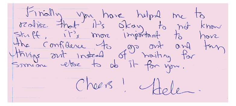 "I loved the relaxed style of teaching and I loved the way you went off on tangents to cover many fascinating subjects." Helen